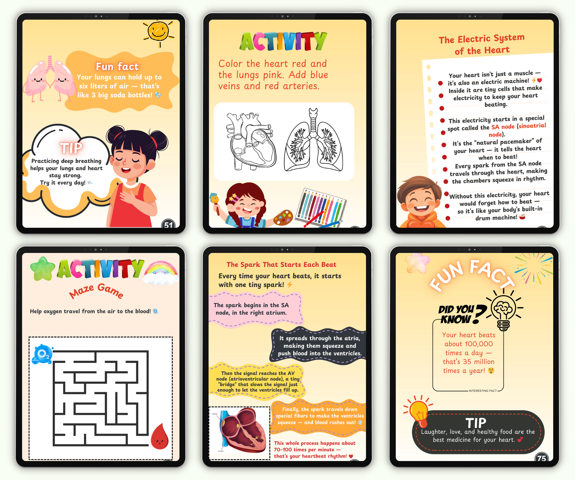 ✅ Interactive Learning: Includes "Pulse Check" challenges, "Heartbeat Rhythm" games, and "Design Your Own Healthy Heart" activities.