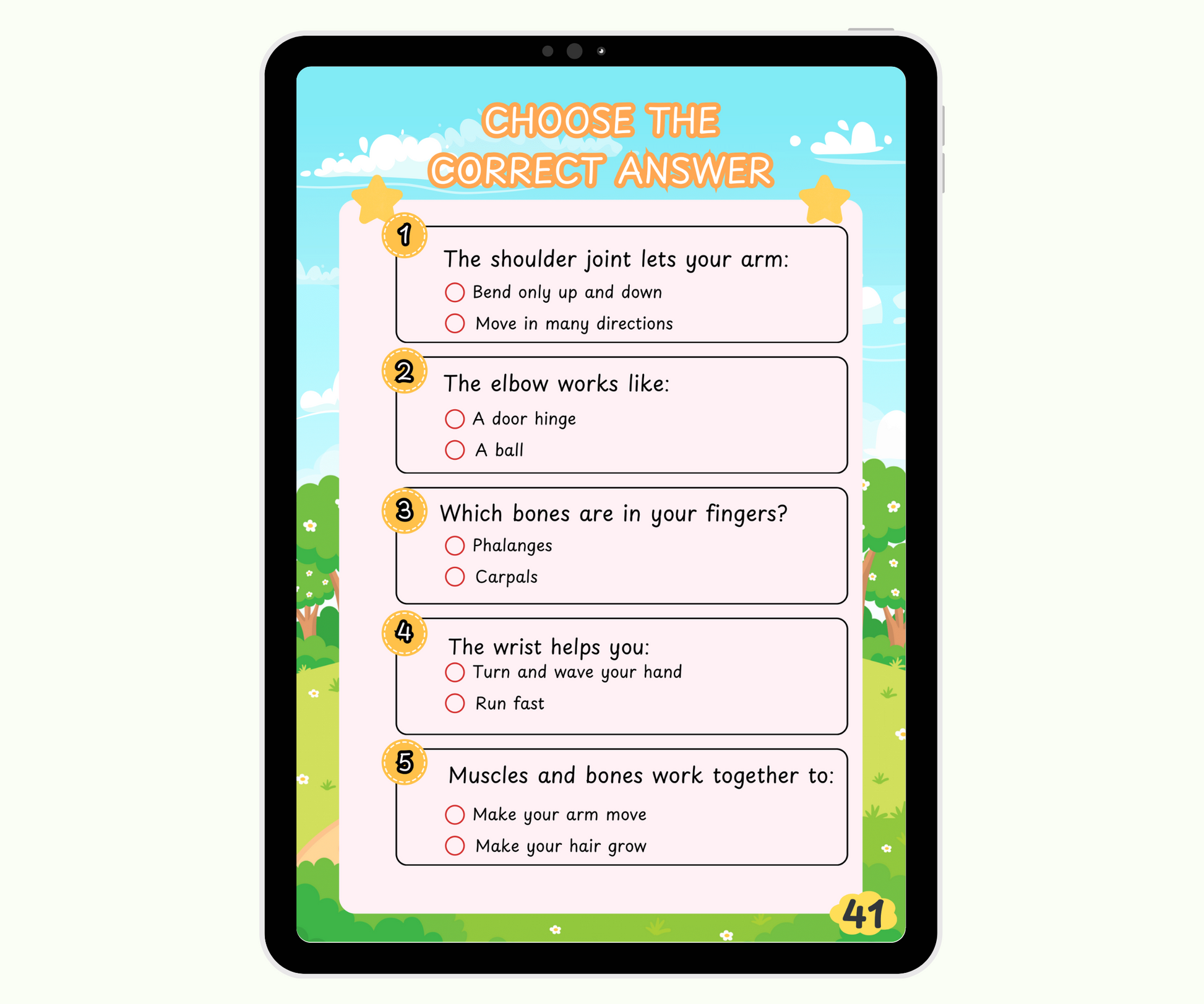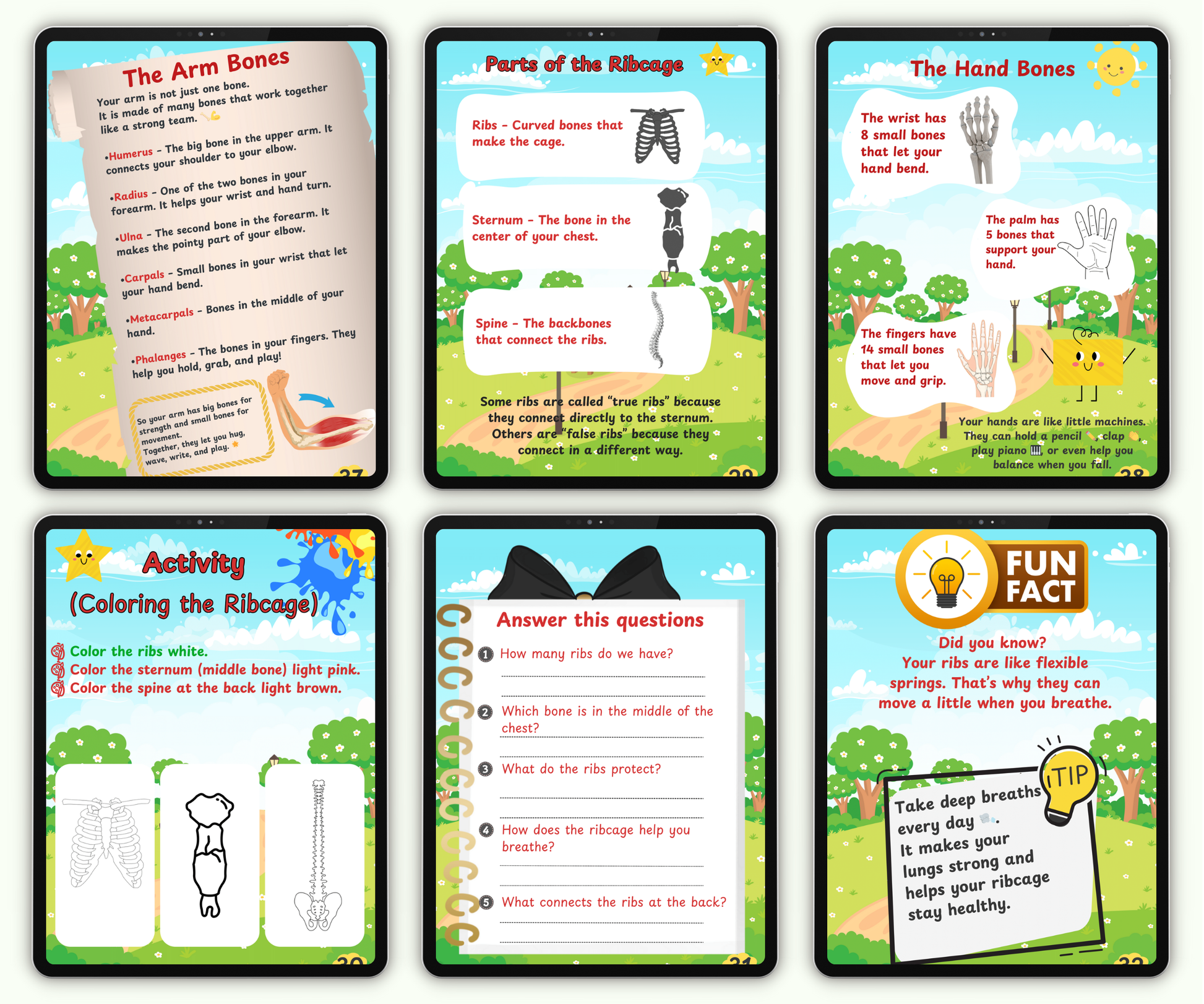 Imagine your child standing tall, understanding how their bones work like a superhero’s armor, protecting them and giving their body shape and strength! This eBook turns the skeletal system into a fascinating adventure, where every bone has a story and a special job to do.
